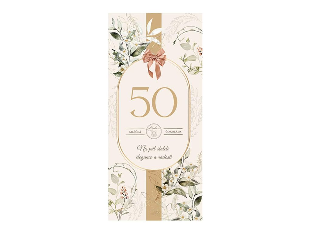Padesáté narozeniny jsou významným životním milníkem, který si zaslouží oslavu plnou radosti a milých překvapení. Darujte sladkou pozornost, která vykouzlí úsměv a zpříjemní slavnostní den. Lahodná mléčná čokoláda v elegantním dárkovém obalu s květinovým motivem spojuje jemnou chuť s krásným designem. Ideální drobný dárek, který potěší srdce i chuťové buňky.