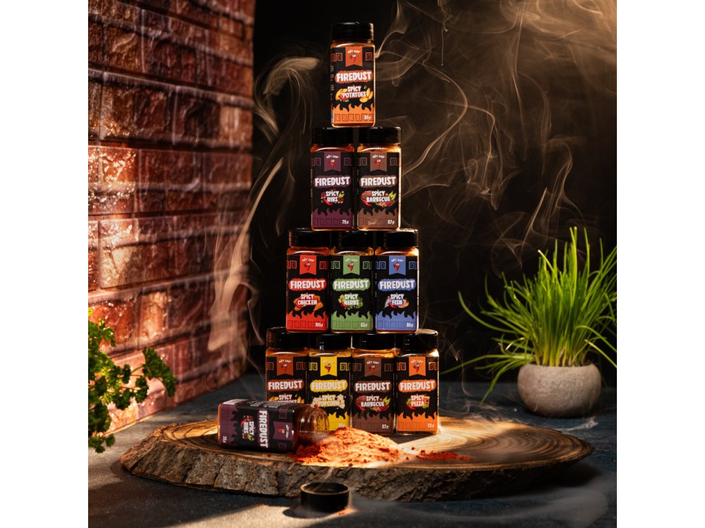 Dárková sada Firedust od HOT-CHIP je dokonalým doplňkem každé kuchyně. Obsahuje osm unikátních směsí koření, které jsou perfektní pro marinování masa, dochucení příloh nebo přípravu snacků. Od pikantní pizzy, přes grilování žeber až po sýrový popcorn – každý pokrm povýší na gurmánský zážitek. Ideální pro ty, kteří milují výrazné chutě a rádi experimentují. Udělejte radost sobě nebo svým blízkým tímto výjimečným kořením.