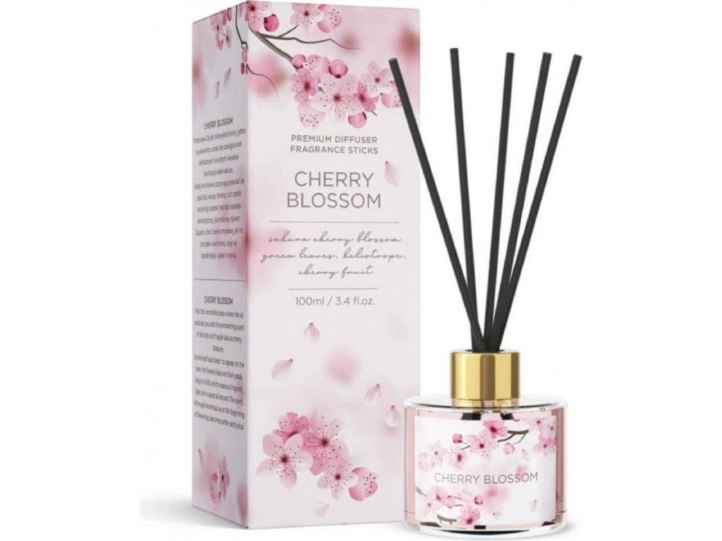 Luxusní difuzér s vonnými tyčinkami s vůní třešňových květů.