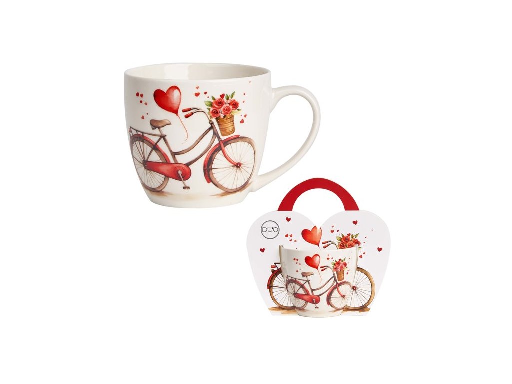 Porcelánový hrnek s motivem jízdního kola a srdíček v sobě nese lehkost, radost a nádech romantiky. Design působí hravě a optimisticky připomíná malé každodenní radosti, které dělají obyčejné chvíle výjimečnými.