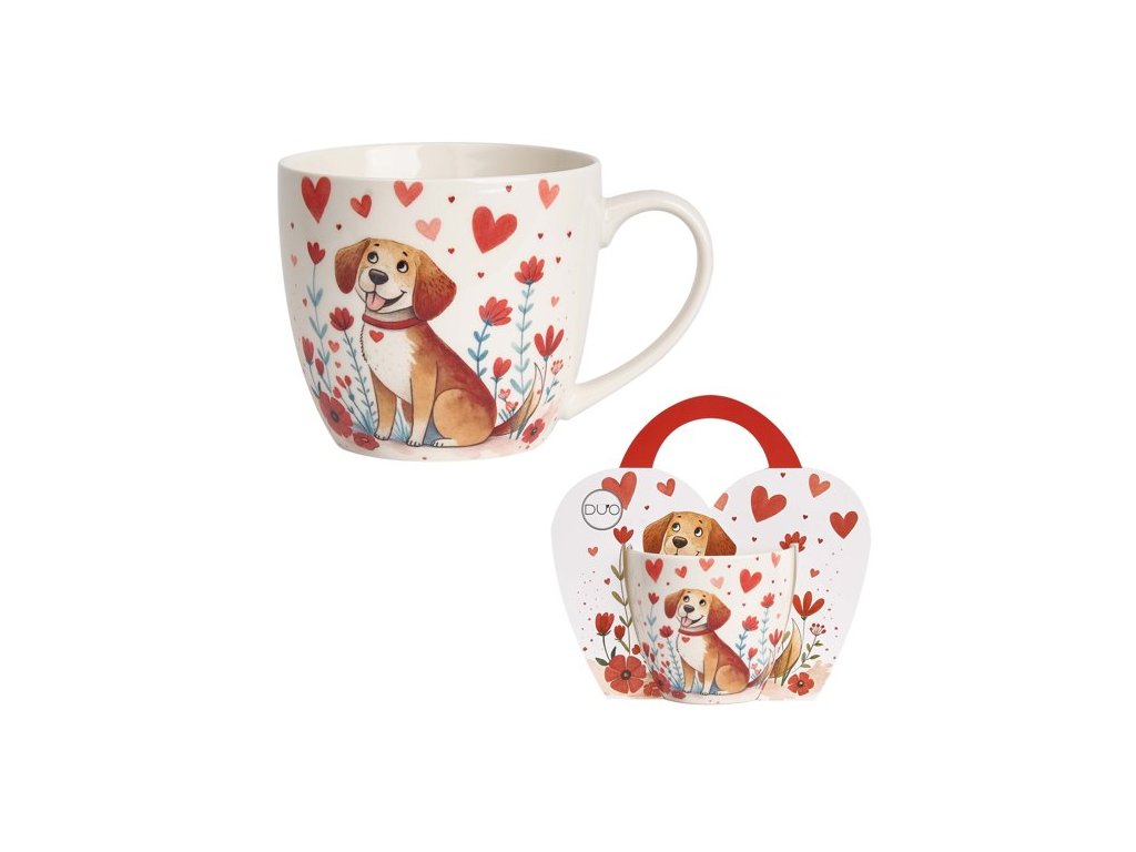 Tenhle hrnek si vás získá hned na první pohled. Roztomilý pejsek obklopený srdíčky připomíná bezpodmínečnou radost, věrnost a malé každodenní chvíle pohody. Ideální společník pro ranní kávu, odpolední čaj i klidné večery, kdy si chcete dopřát chvilku jen pro sebe.