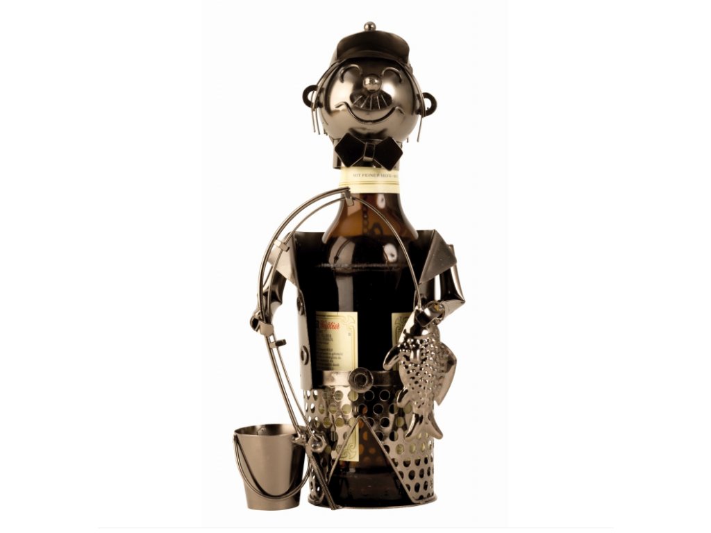 KOVOVÝ STOJAN NA VÍNO, RYBÁŘ S KYBLÍKEM
