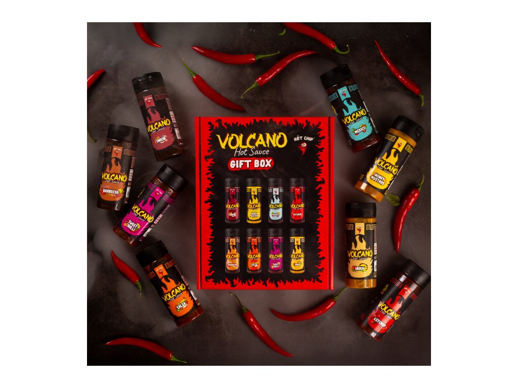 Volcano set je stvořený pro všechny, kdo milují pestrost chutí a bez ostrého si nedokážou své jídlo ani představit. V jednom balení najdeš 8 originálních omáček po 270 ml, každá inspirovaná jiným koutem světa a pečlivě připravená tak, aby ti přinesla maximální chuťový požitek.