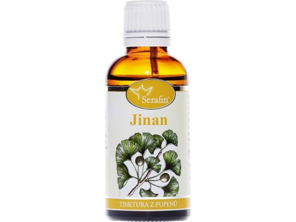 Tinktura z pupenů Serafin Jinan je koncentrovaný výtažek z ginkgo biloba určený pro dospělé, kteří chtějí podpořit paměť a koncentraci a přispět k normální funkci oběhového systému. Produkt v 50 ml lahvi obsahuje 37,5 % alkoholu a užívá se perorálně podle dávkování. Není vhodný pro děti, těhotné ani kojící ženy; pochází z České republiky.