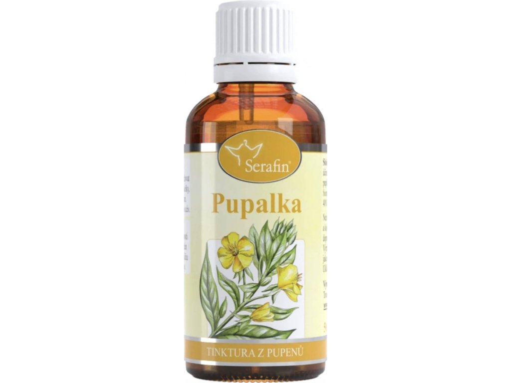 Tinktura z pupenů od Serafin v praktickém balení 50 ml obsahuje extrakt z pupenů pupalky v lihoglycerinovém nosiči (lihovitost 37,5 %). Produkt je určen pro dospělé ženy a přispívá k (před)menstruačnímu komfortu a udržení přirozeného stavu pokožky. Doporučené dávkování je 1 kapka na 1 kg tělesné hmotnosti, rozdělená na 2–3 dávky denně. Nevhodné pro těhotné a kojící ženy, vyrobeno v ČR.
