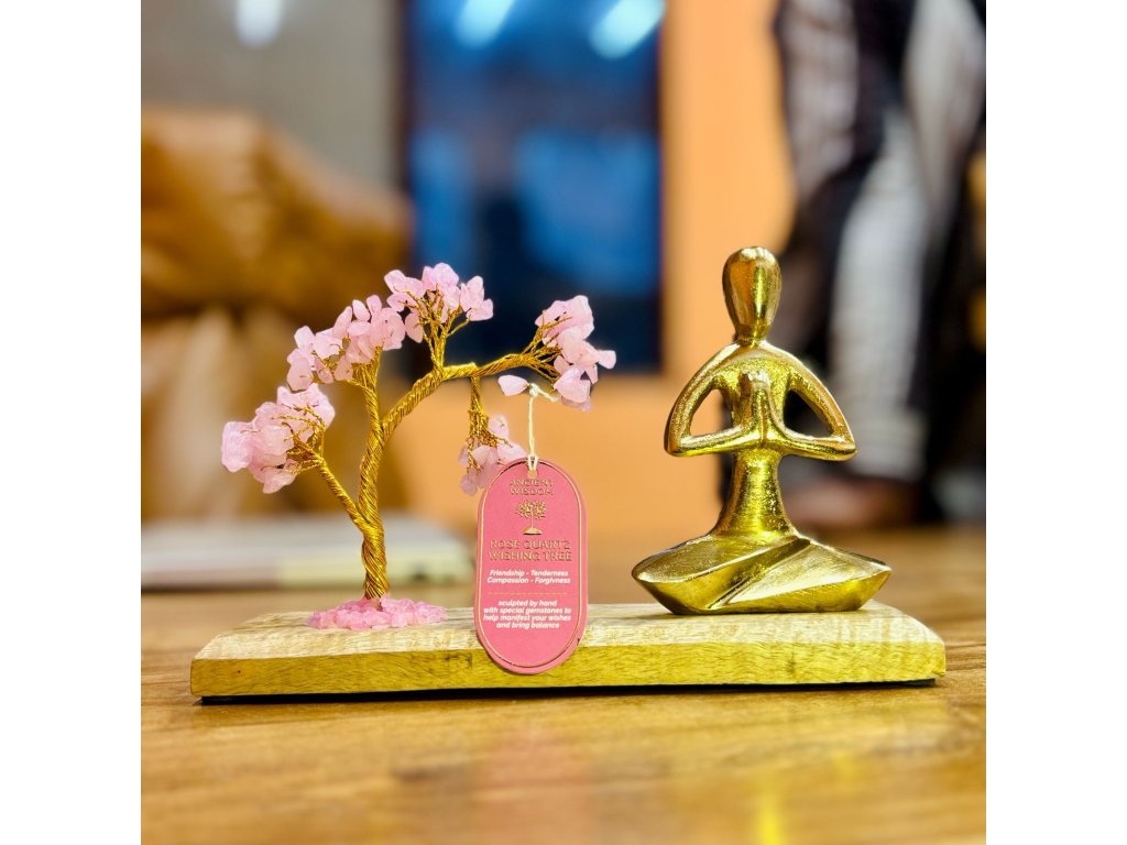 Stromek Štěstí s Jóga Figurkou na Mangovém Dřevě - Namasté Póza - Růženín