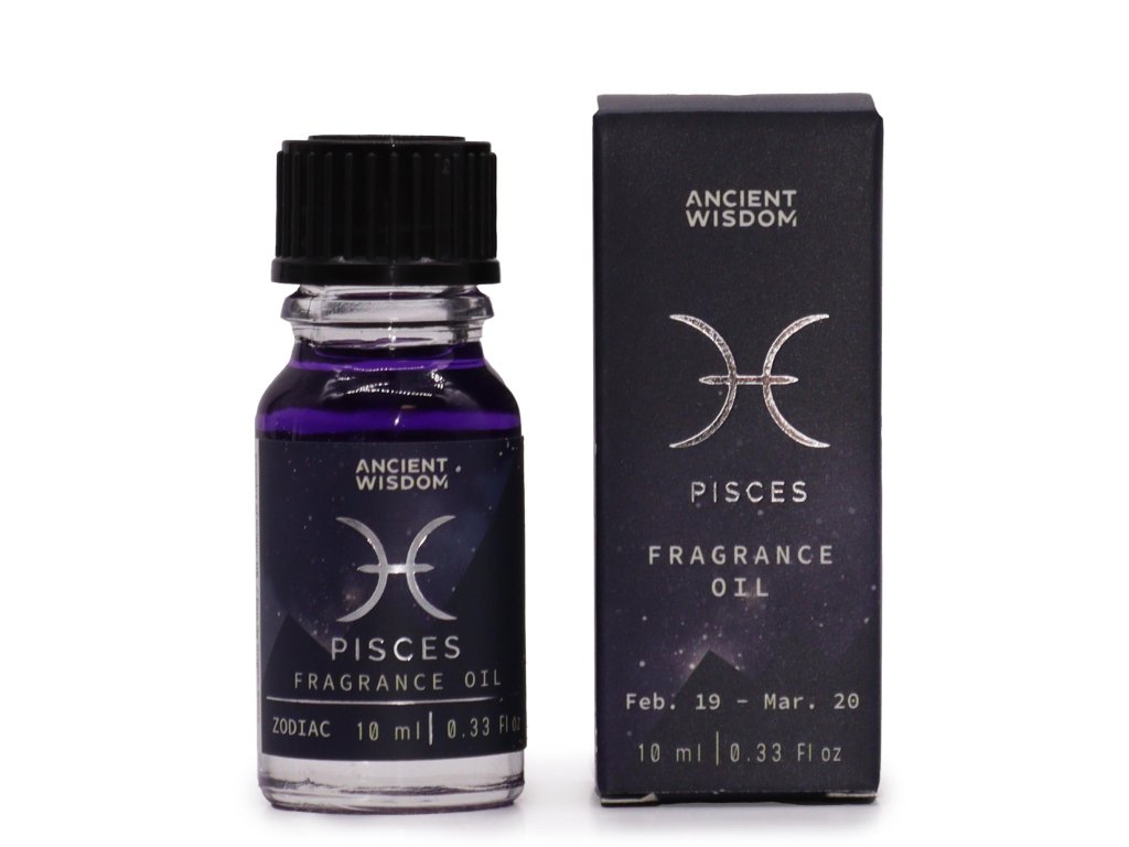 Vonný olej Zvěrokruh - RYBY - akvamarín a vůně nebeského kouře je 10 ml lahvička vonného oleje, který je navržen tak, aby představoval znamení zvěrokruhu Ryb.